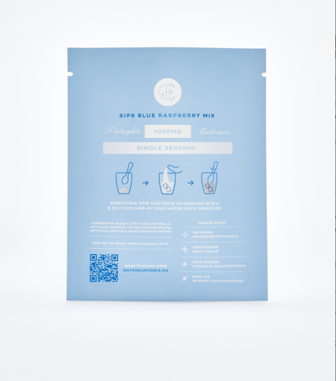 1. How do I use Euphoria Psychedelics Blue Raspberry Sips Mix? Just pour the mixture into some water, swirl, and savor. If you have never used mushrooms before, start with a lower dosage and increase as necessary.